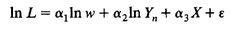 где L - участие региональной рабочей силы, w - реальная рыночная заработная плата, Yn-реальный нетрудовой доход, X - все другие факторы, является случайной ошибкой и ln обозначает натуральный логарифм. Теория разрешает быть a2 либо положительной, либо отрицательной.