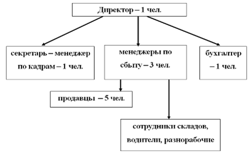 В непосредственном подчинении директора находятся: секретарь, совмещающий обязанности менеджера по кадрам, бухгалтер, менеджеры по сбыту.