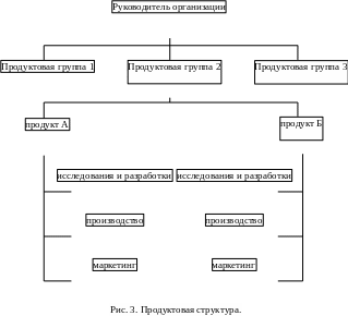 Функционирование продуктовой структуры возможно только в случае четкого выделения отдельных продуктов в особые подструктуры (например, в консервном производстве создаются подструктуры, специализирующиеся на рыбных, мясных и фруктовых консервах). Обычно отдельная подструктура формируется как максимально автономная, ее руководитель подчиняется высшему управленческому органу (генеральному директору) только по ограниченному кругу принимаемых решений. В частности, высшее руководство осуществляет контроль за связями с внешней средой, принимает решения о реорганизации производственного процесса, об изменении главных целей.