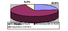 Как показывают данные рис. 3.3. большинство респондентов (70,0%) единодушны во мнении, что за последний год в деятельности ООО «Техносеть» не произошло никаких существенных изменений, нововведения отсутствовали. Они считают, что работа компании протекала более или менее ровно, без особенных взлетов и падений. Однако, 23,6% опрошенных утверждают, что нововведения в компании все-таки присутствовали.
