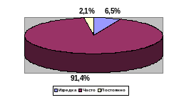 Данные рис. 3.7. показывают, что практически все сотрудники ООО «Техносеть» (91,4%) довольно часто используют в своей деятельности новые технологии. Постоянно используют новые технологии 2,1% опрошенных. И лишь 6,5% ответов респондентов отражает редкость использования ими новых технологий.