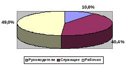 Данные, представленные на рис. 3.1. свидетельствуют о том, что самой обширной группой респондентов явились рабочие – 23 чел. (49%). Несколько меньший процент опрошенных относится к служащим компании - 40,4% (19 человек). Также было опрошено 5 руководителей, что составляет 10,6% от общего числа опрошенных. Возрастные характеристики группы респондентов отражены на Рисунке 3.2.