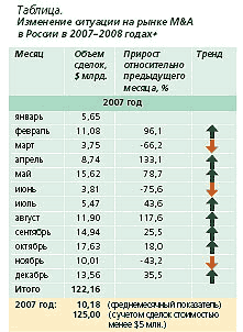 Изменение на рынке M&A в России в 2007-2008 гг.