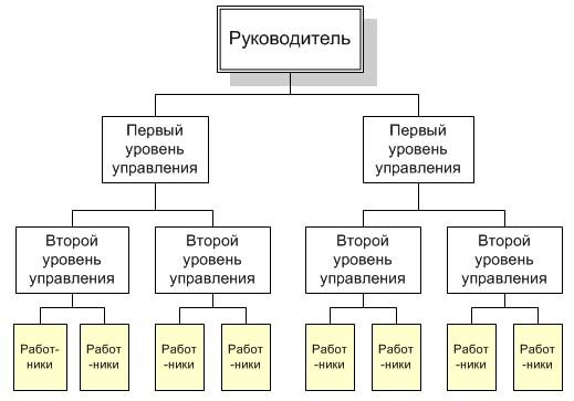 Самый простой тип структуры—это строго линейная. Она основывается только на отношениях “руководства—подчинения” и отражает самую общую ступень разделения управленческого труда — на отдачу приказов, распоряжений, указаний и на их исполнение. В чистом виде линейные структуры в наше время существуют лишь в небольших по масштабам организациях, выполняющих элементарные производственные функции или услуги с очень несложной технологией.