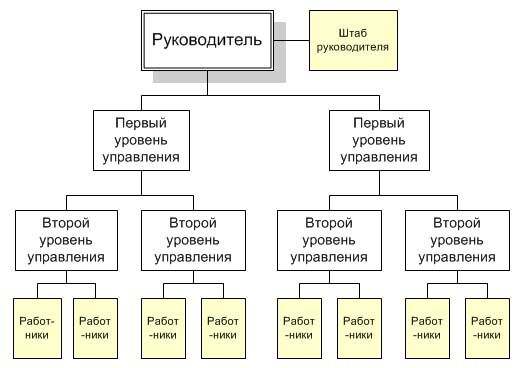 В то же время линейная форма отношений руководитель— подчиненный как способ реализации организационного принципа единоначалия является обязательным элементом практически всех формальных структур. Объем и содержание полномочий линейных органов по распорядительству ресурсами в основном определяют такую важную характеристику системы управления, как уровень ее централизации.