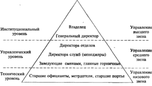 Высший уровень управления гостиничным предприятием представлен владельцем гостиницы и генеральным директором, которые принимают общие решения стратегического характера.