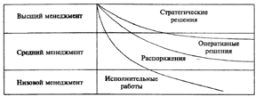 Данная организационная структура показывают, что на высшем уровне они занимает около 10%, на среднем — 50% и на низшем — около 70% общего времени менеджеров (рис. 6).