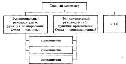 Таким образом, общая задача управления организацией делится, начиная со среднего уровня, по функциональному критерию. Отсюда и название — функциональная структура управления.