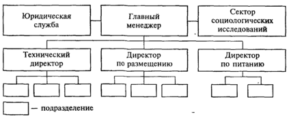 Организационная структура гостиничного предприятия определяется его назначением, вместимостью номерного фонда, спецификой гостей и рядом других факторов.