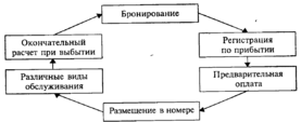 Сразу же после размещения гостя в отеле расчетная часть открывает на его имя счет. Обычно гость пользуется услугами различных служб гостиницы, предъявляя визитную карточку или называя номер комнаты. Эти службы дают сведения о расходах гостя в расчетную часть, которая включает их в общий счет. В конце пребывания гостя расчетная часть рассчитывается с ним и информирует об этом все гостиничные службы.
