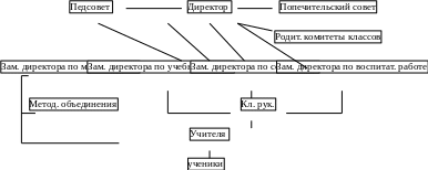 Вертикальная структура управления образовательным учреждением представлена четырьмя уровнями: директор - заместители - педагоги - учащиеся. Каждый нижестоящий уровень субъекта управления является одновременно и объектом управления по отношению к вышестоящему уровню.