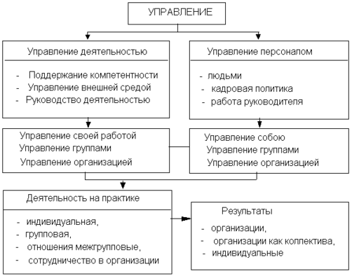 Всю работу по управлению можно разделить на две части: - управление деятельностью фирмы, - управление людьми (персоналом) (см. рисунок 1).