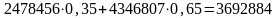 В связи с этим, для согласования результатов оценки, присваиваем каждому методу удельный вес: затратный подход – 0,35; сравнительный подход – 0,65. Определяем средневзвешенную стоимость предприятия с учетом удельных весов подходов: