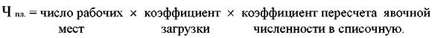 Предлагается другой метод расчета плановой численности персонала на основе количества рабочих мест и коэффициента загрузки оборудования по следующей формуле.