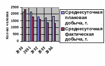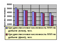 | Среднеспи-сочная чис-ленность ра-бочих по до-быче, чел. | 4600 | 4245 | 4065 | 4006 | 3725 | 3594 | 3500 | 3345 | 3500 | 2884 | |||