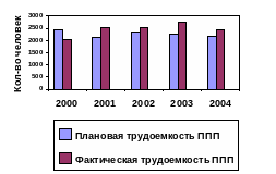 Рисунок 2.1 – Динамика трудоемкости работ ППП ш/у Бажанова за период 2000-2004 г.г.