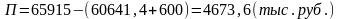 Прибыль определяется как разность между ценой реализации и издержками производства по формуле: