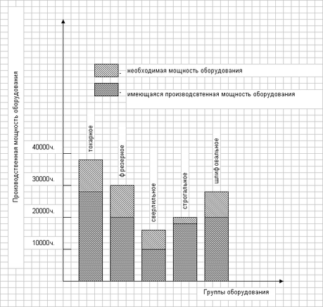 Рис.1. Диаграмма производственной мощности оборудования участка