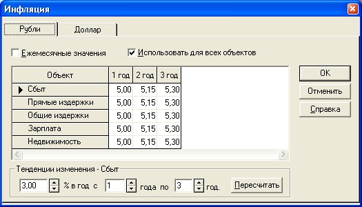 Для получения более достоверных результатов финансового анализа учтем инфляцию с тенденцией изменения – 3% в год (рисунок 6).