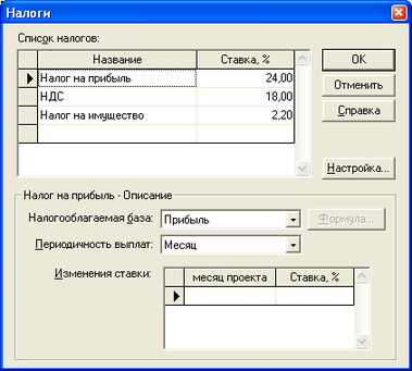 Предприятие в ходе предпринимательской деятельности будет уплачивать налог на прибыль в размере 24%, налог на добавленную стоимость в размере 18%, а так же налог на имущество, равный 2,2% от стоимости имущества. Периодичность выплат будет составлять 1 месяц.