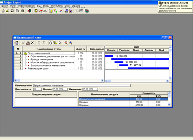 Благодаря названной программе мы сумеем аналитически организовать работу фирмы, отметить каждый этап в ее создании и развитии, определить издержки подготовительного этапа в календарном плане и проследить их на протяжении реализации проекта с учетом налогов и инфляции, рассчитать предполагаемый уровень сбыта, и увидеть какова при этом окажется прибыль от реализации.