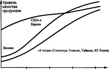Десять лет назад в докладах на конференциях и в журнальных статьях приводился график динамики уровня качества в Японии и на Запад (в Европе и США) (рис.1) [2, C.119].