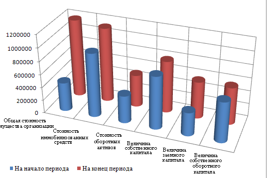 Из графика, представленного на рисунке 10 видно, что за исследуемый период , у предприятия произошел рост по всем показателям. Даже в части заемного капитала, что говорит о положительном для предприятии времени, раз ему дают ссуды, значит оно не находится в стадии критического состояния.