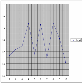 | Уровень ряда | 16,7 | 17,2 | 17,5 | 19,4 | 16,8 | 19,3 | 16,5 | 19,4 | 18,1 | 16,1 |