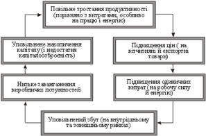 Схематично залежність результатів виробництва і ситуації в країні від низької продуктивності відображає модель «пастки» низької продуктивності (рис. 1.).