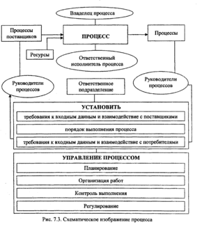 Если перенести понятие функции в математике на процесс и соотнести его с определением процесса по ИСО 9000:2000, то тогда выражение это можно интерпретировать следующим образом: имея входы процесса «Х1 х2..., хп », преобразовать их в выход «У» в соответствии с правилом преобразования «f».
