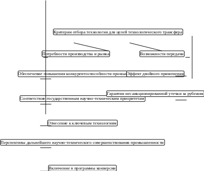 В качестве следующего элемента инновационного механизма предпринимательства можно назвать механизм технологического трансфера. Речь идет о передаче технологий, разработанных в государственном секторе, в предпринимательский сектор. Важность такого механизма связана с тем, что многие открытия и важные технические решения получены в государственных НИИ, но для их коммерциализации необходимо осуществление дополнительных затрат, причем, в ряде случаев более значительных, чем те, которые произведены на исследовательской стадии. У государства нет достаточных средств для финансирования стадий внедрения, поэтому было бы правильно предоставить предпринимательским структурам возможность использования в производстве таких разработок. Для организации трансфера представляется важным прежде всего определить принципы передачи технологий. Они должны быть следующими: возмездность, контролируемость направлений использования, дальнейшее научно-техническое развитие, отсутствие негативных последствий для оборонных и стратегических отраслей. Критериями отбора технологий для передачи в промышленность могут быть представлены двумя группами: критериями, характеризующими потребность производства и рыночными и критериями, связанными с возможностью передачи. Состав этих групп в более реальной разбивке представлен на рис.2.