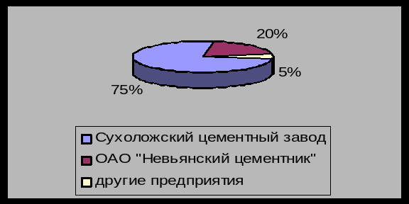 Основным конкурентом на рынке для нашего предприятия является Сухоложский цементный завод. Он выпускает в три раза больше продукции, чем ОАО «Невьянский цементник», имеет более низкие издержки, более высокий имидж. Сухоложский цементный завод обладает 75% рынка и при желании за счет демпинговых цен он мог бы захватить часть рынка, которая принадлежит нашему предприятию.