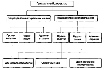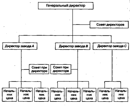 | Объектная | Линейно-функциональная комбинированная структура, выстроенная по принципутерриториального выделения, представляемая заводскими, фабричными, филиальными, цеховыми, участковыми и другими вариациями |