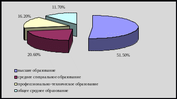 Данные об образовательный уровень работников ОАО «ГМЗ № 2» по состоянию на 01.01.2007г. приведены на рисунке 2.1.