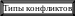 Некоторые исследователи выделяют следующие виды конфликтов, которые наиболее часто проявляются в организации: