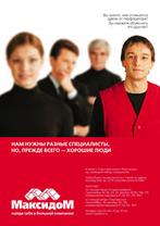До лета 2004 года "Максидом" оригинальностью при наборе персонала не отличался: компания размещала рекламные объявления "Ищем грузчиков, продавцов, кассиров". Так делали все. А потом подошло время думать об открытии нового магазина. Надо было организовать набор сотрудников. "И нам пришла в голову мысль: а почему не помочь созданию имиджа компании с помощью акции по набору персонала, - рассказывает Вероника Олейникова, руководитель отдела рекламы компании "Максидом".