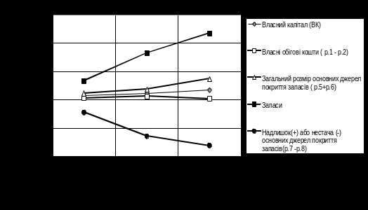 Рис.2.7 Динаміка показників покриття запасів джерелами ресурсів в ПП "Монолит Пласт"