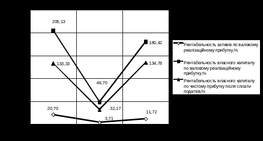то рентабельність власного капітала по валовому реалізаційному прибутку досягає 180 –200%