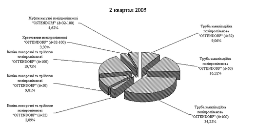 Рис.3.3. – Структура чистого доходу від продажу продукції основних асортиментних груп ПП "Монолит Пласт" у 2 кварталі 2005 року