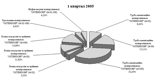 Рис.3.2. – Структура чистого доходу від продажу продукції основних асортиментних груп ПП "Монолит Пласт" у 1 кварталі 2005 року