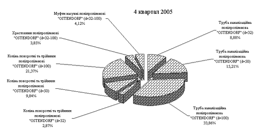 Рис.3.5. – Структура чистого доходу від продажу продукції основних асортиментних груп ПП "Монолит Пласт" у 4 кварталі 2005 року