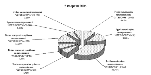 Рис.3.7. – Структура чистого доходу від продажу продукції основних асортиментних груп ПП "Монолит Пласт" у 2 кварталі 2006 року