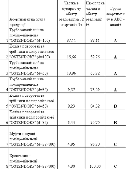 3.1 Впровадження проекту АВС- аналізу управління оптимізацією асортиментом сантехнічної продукції ПП "Монолит Пласт"