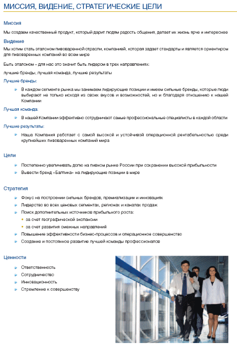 Для нашей курсовой работы мы выбрали пивоваренную компанию «Балтика» – лидера рынка пива России и СНГ. Ниже представлен фрагмент ежегодного отчёта.