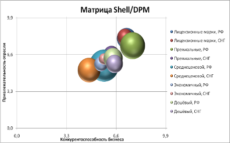 Британско-Голландская химическая организация Shell разработала и внедрила в практику стратегического анализа и планирования модель, получившую название матрицы направленной политики (DPM – Direct Policy Matrix). Модель Shell/DPM меньше всего полагалась на оценку достижений анализируемой организации в прошлом и главным образом сосредотачивалась на анализе развития текущей отраслевой ситуации.