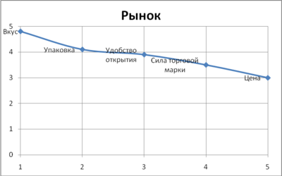 Оба конкурента немного меньше требуемого значения по вкусу, у SABMiller лучше показатель по критерию «упаковка», однако по остальным, менее важным критериям он уступает как желаниям потребителей, так и компании «Балтика».