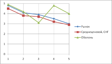 И вновь СНГ, и вновь «Оболонь» не оставляет шансов компании «Балтика». Мало того, что по всем критериям «Балтика» не дотягивает до желаний клиентов, так «Оболонь» ещё и значительно лучше удовлетворяет эти самые желания. Казалось бы, шансов у компании «Балтика» на хорошую деятельность в этой отрасли мало, однако рынок растёт бурными темпами, люди с каждым годом пьют всё больше и больше недорогого пива, поэтому всё будет хорошо.