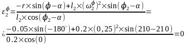 - Аналог углового ускорения звена 2: