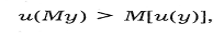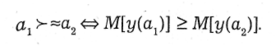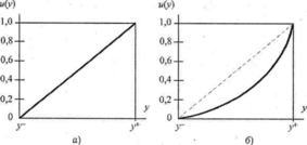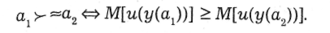 Если для всех у = t, например, оказывается, что P(Y(a) ≥ у) ≥ P(Y(b) ≥ у), то, альтернатива b стохастически доминируется. Формальный вид этого правила стохастического доминирования представлен следующим выражением Fa(y) ≤ Fh(y), для всех значений У. Где Fa{y) = P(Y(a) Проверку на доминируемость по выше приведённому правилу технологически эффективно проводить визуально. Для этого следует изобразить графики функций Fa(y) и Fb(y) в одной системе координат и выбрать ту альтернативу, график функции распределения результата для которой лежит геометрически ниже. Если случайный результат Y дискретен и имеет не очень много возможных значений у, то для графической проверки на недоминируемость удобно использовать стандартную лепестковую диаграмму из пакета Excel, которая является аналогом полярной системы координат. В качестве примера в табл.1 представлены значения (в сотых долях) функции Fa(y) распределения непрерывного результата Y(a) для четырех альтернатив. Таблица 1. Значения функции Fa(y) распределения результатов Y(a) Альтернативы Значения у,(а) результатов Y(a) У1 У2 У3 У4 У5 У6 У7 У8 У9 У10 а{ 15 40 60 70 80 85 90 95 91 99 а2 0 0 30 55 70 80 85 90 91 92 аъ 0 5 9 11 18 20 22 27 29 30 a4 0 0 0 5 12 22 45 70 90 95 Пусть для определенности более предпочтительным для ЛПР является значение результата с большим индексом (т. е. значение у10 предпочтительнее значения у9, которое в свою очередь более предпочтительно, чем у8 и т.д., а значение у1 — наименее предпочтительное). Альтернатива а доминируется альтернативами а2 , а3 и а4, которые между собой несравнимы по правилу стохастического доминирования, заданного соотношением а Fa(y) < Fh(y). Таким образом, отношение стохастического доминирования, задаваемое данным выражением, несвязно, так как неравенство в правой части выражения может не выполняться для всех значений результата. Ввиду этого оно обладает достаточно слабой разрешающей способностью и незначительно сокращает объем исходного множества альтернатив. Возможно также применение и более сложных принципов стохастического доминирования. Последующее сужение множества выбора возможно лишь при использовании дополнительной информации о предпочтительности того или иного решения. Как уже отмечалось, часто в качестве такой информации выступают сведения о предпочтительности в среднем, предпочтительности по уровню гарантии получения результатов или предпочтительности по уровню самого гарантированного результата. Получение от ЛПР подобной информации означает, что лицо, принимающее решения, как бы безразлично к риску (подробнее смысл "безразличия к риску" будет пояснен ниже) и стремится использовать для анализа только объективные характеристики распределения вероятностей. Теперь обсудим еще один вопрос. А можно ли как-то более строго описать характер отношения ЛПР к стохастическому риску? Оказывается, да. Причем сделать это можно как на качественном уровне (в качественных шкалах), так и на количественном. Методологической базой для ответов на подобные вопросы является теория полезности. Обозначим функцию полезности через и(у). Согласно аксиоматической теории полезности отношение предпочтения на множестве А альтернатив моделируется с использованием математического ожидания М[и(у(а))] функции полезности для этих альтернатив: Качественно указанные особенности отношения предпочтения ЛПР могут быть отражены графически.