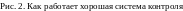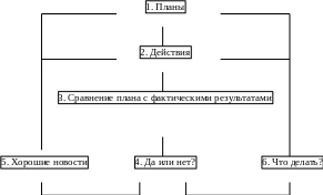 Блок 4 (да или нет?) следует сразу же за блоком 3 и задает вопрос: «Получили ли мы то, что хотели?». Если ответ положительный – «да», то идем к блоку 5 «хорошие новости». Процесс не завершается, он возвращается к этапу планирования действий, эффективно иллюстрируя: «Что мы запланировали, то прекрасно выполнили». Если же ответом на вопрос блока 4 оказалось «нет», то переход осуществляется к блоку 6 «Что делать?». Очевидно, что существует три варианта: либо произошла неконтролируемая аномалия, тогда ничего предпринимать не требуется, или же что-то было сделано неверно, в этом случае мы должны проинформировать исполнителя в блоке 2. Третья возможность заключается в том, что мы приняли неосуществимый план, тогда следует известить об этом «прожектеров» в блоке 1. Все это звучит примитивно, но здесь есть как преимущества, так и проблемы, и система контроля может создать не меньше проблем, чем она сама способна предотвратить, если ею не управлять надлежащим образом. За каждым из шести блоков скрываются нюансы, которые следует иметь в виду». [16,233]